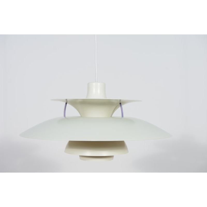 This is a Poul Henningsen's 1958 design based on the principle of a reflective three-shade system, which directs the majority of the light downwards. The PH5 lamp was launched in 1958: the 5 in its name refers to its 50 cm diameter. The shades are in white