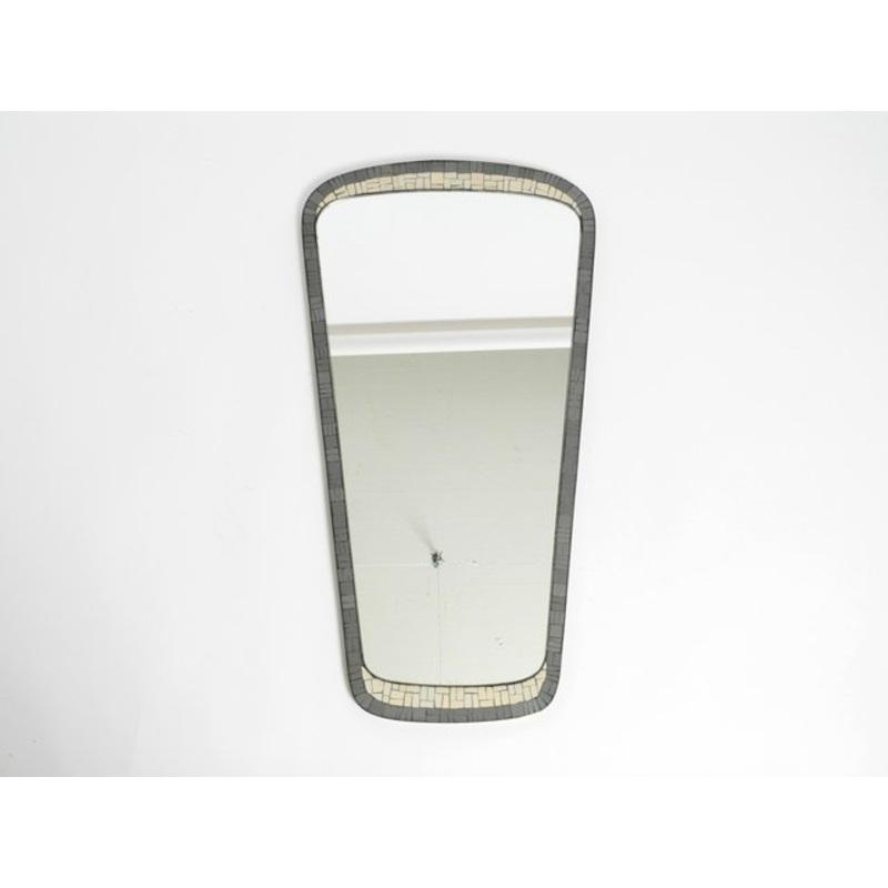 Original large Mid Century Modern wall mosaic mirror with a heavy brass frame.Manufacturer is Mnchner Zierspiegel. Made in GermanyGreat 1950s design. Very high quality and elegantly crafted.Heavy and very solidly built. Weight approx. 10 kg.At the top and