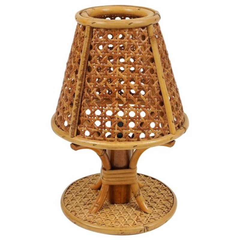 Mid-Century Rattan and Wicker Table Lamp in the style of Louis Sognot, Italy, 1970s for sale at Pamono