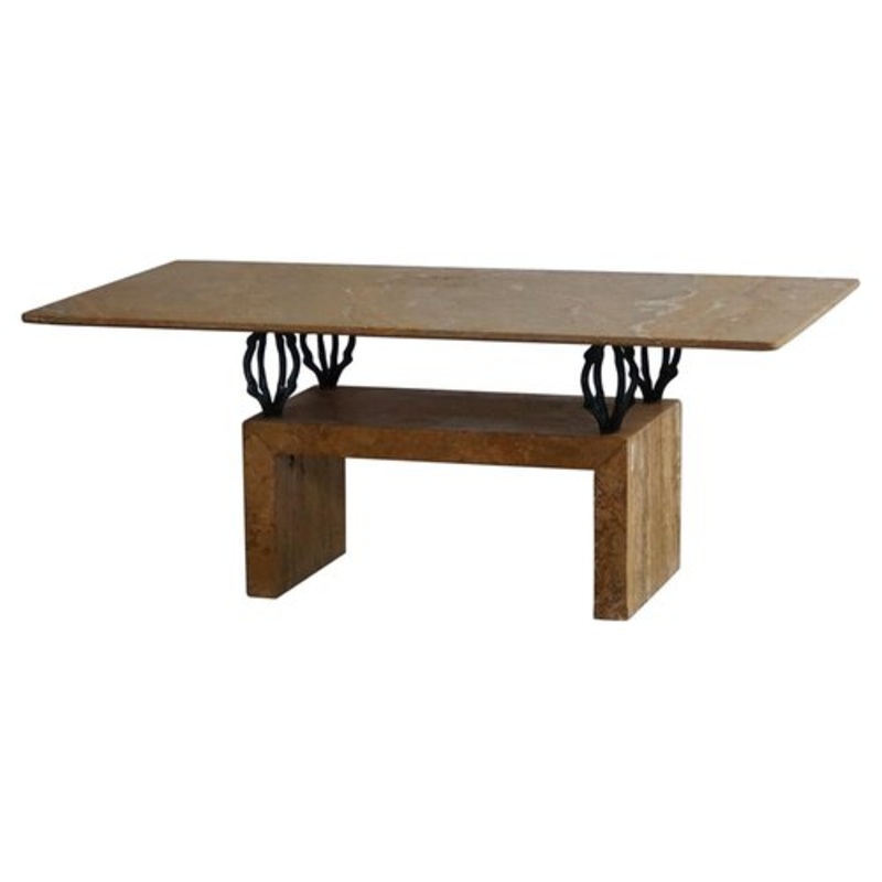 Beautiful rectangular coffee table in marble, resting on sculptural iron pedistals, making it floating. Made in Italy – 1970-1980s. This brutalist piece is in a great vintage condition.