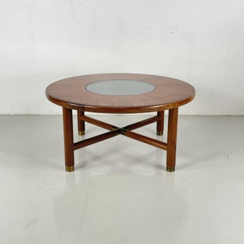 Lovely MidCentury vintage teak round coffee table with afromosia legs and smoked glass top. Brass fixings and feet. In good vintage condition. Approximate dimensions: Width: 96cm Height: 45cm. Production Period Before 2010 Style Vintage, Mid-Century Detail
