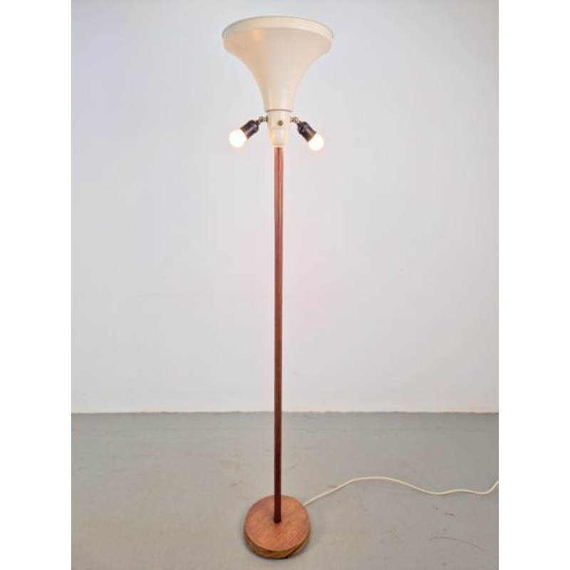 Vintage ’60s floor lamp this elegant modern Scandinavian floor lamp in mid-century style, made of metal, teak wood, comes with a free shade.