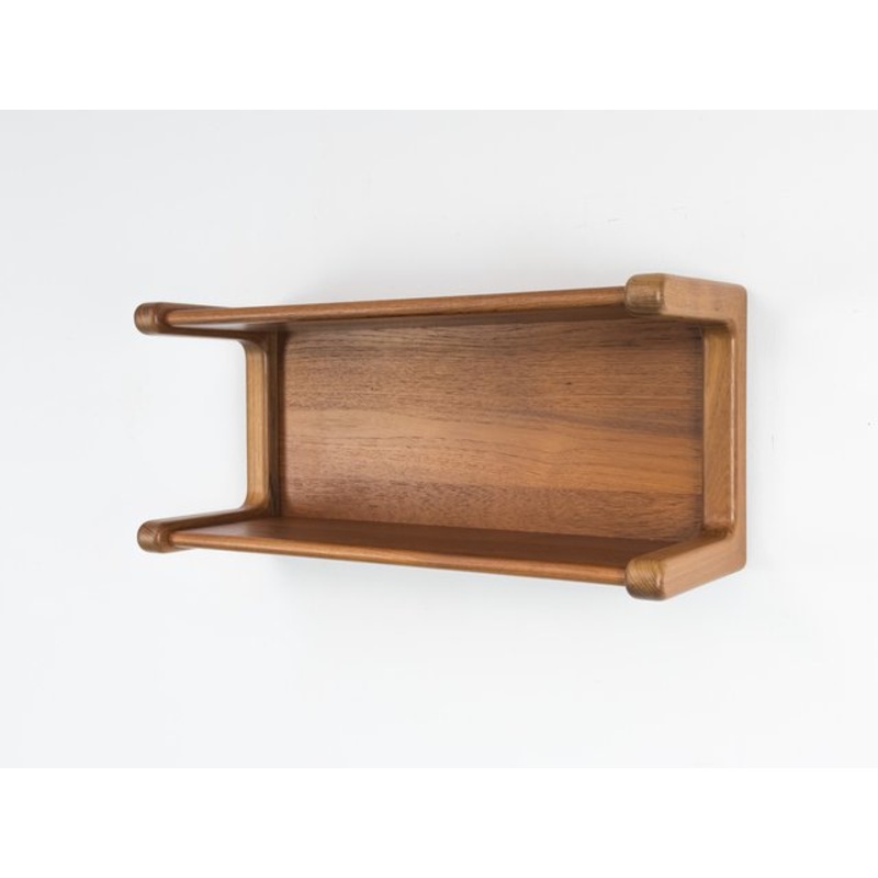 Wall shelf with U-shaped side panels, made entirely of solid teak. Very high quality and elegant construction.