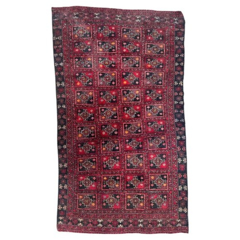 Nice mid century Turkmen Baluch rug with beautiful tribal and geometrical design and nice colours with red, purple, orange, yellow, pink, sky blue, dark blue and white, entirely hand knotted with wool on wool foundation. Dimensions: Width: 37.01 in (94 cm)