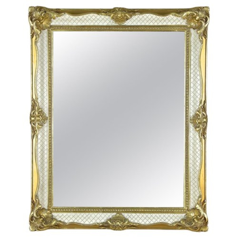Decorative Italian gilt roccoco style wall mirror from the 1950s in Venice. A real eyecatching mirror from the mid century period, modeled after the famous venetian roccoco/ baroque frames from the 18th century. This luxurious golden/ white wall mirror imp