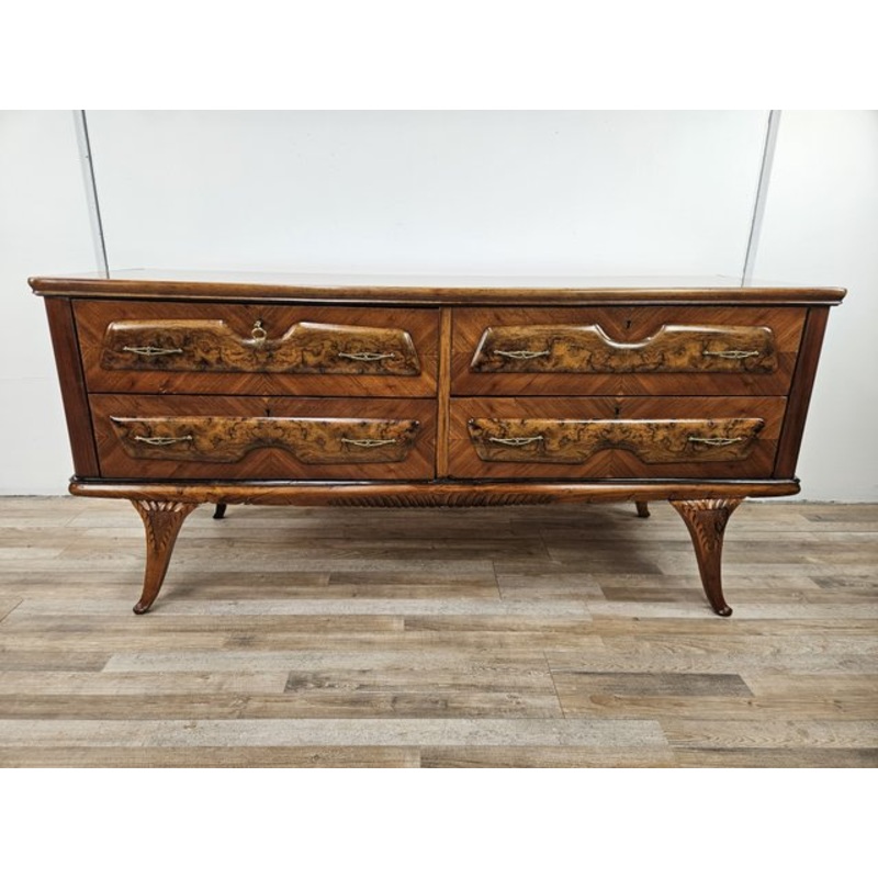 1950s bedroom furniture with four large and sturdy drawers decorated with brass handles and with original lock.