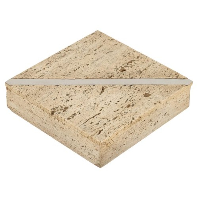 Midcentury beautiful rectangular box in travertine and chrome in the style of Fratelli Mannelli. Made in Italy in the 1970s.