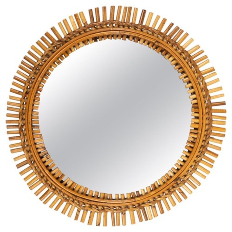 Midcentury beautiful round wall mirror in bamboo and rattan in the style of Franco Albini. Made in Italy in the 1960s. A highly decorative mirror. Creator Franco Albini Design Period 1960 to 1969 Production Period 1960 to 1969 Country of Manufacture Italy