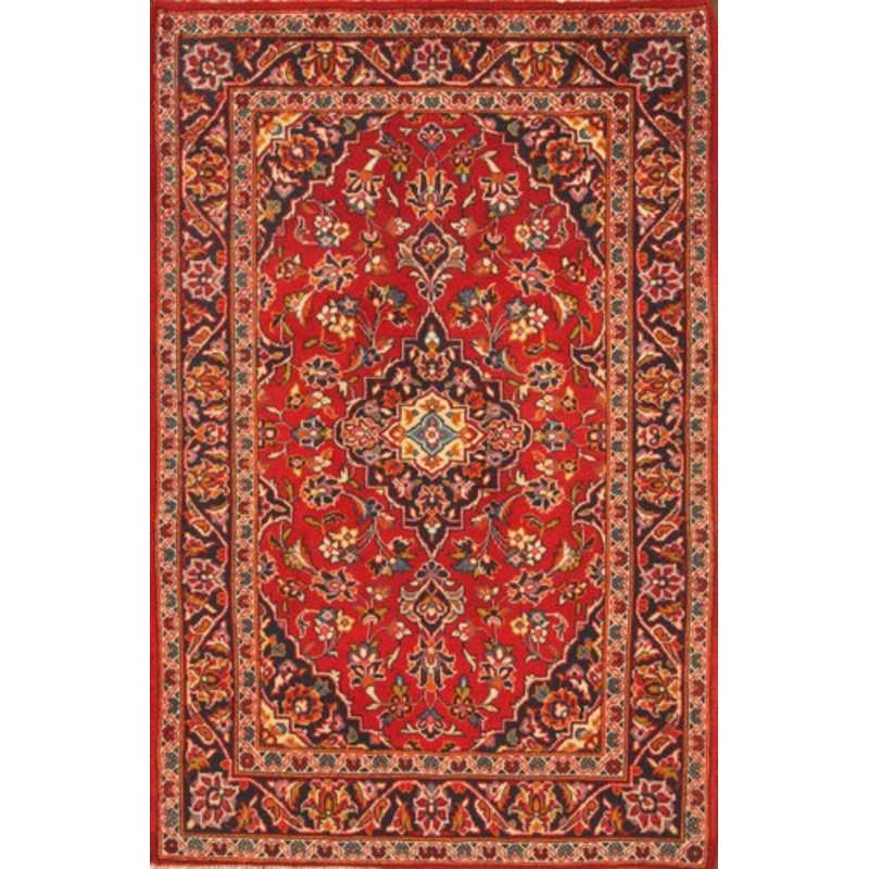Hand-knotted oriental rug | Type: rug Kashan | Knot density: approx. 120.000 knots/m | Material: 100% wool (pile) and 100% cotton (warp) | Size: 155 cm x 100 cm | Condition: Used, but in TOP condition | Age: approx. 5 years | Pattern: Oriental in wonderful plant colors | Suitable for allergy sufferers and underfloor heating | Style: Classic | Color: Red High-quality