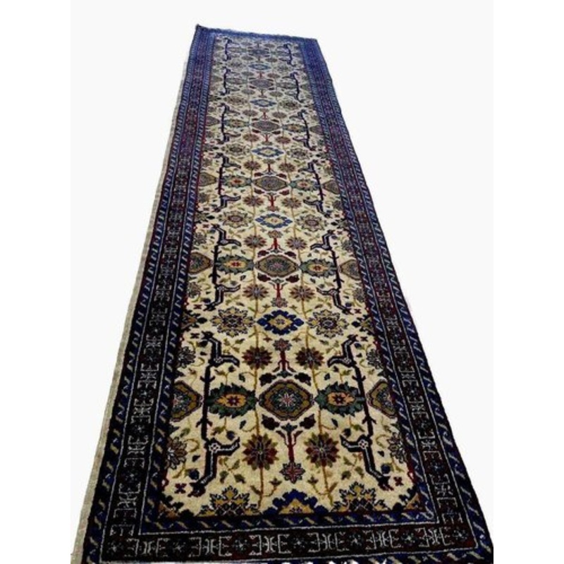 Hand-knotted oriental rug runner | Pattern: Ziegler | Material: Pure new wool | Size: 34395 cm | Pile height: 8 mm | Suitable for underfloor heating | Condition: Used | Colors: Multi-colored | Manufacturing method: Hand-knotted | Warp thread: Cotton