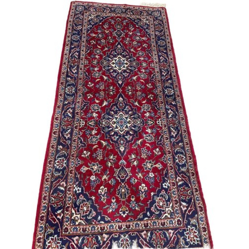 Genuine Kashan rug | Hand-knotted from 100% new wool | Size: 200 x 90 cm | Pile height: 10 mm | Pattern: Oriental | Color: Red | Condition: Used, in good condition | Style: Traditional Oriental Production Period Unknown Style Vintage Detailed Condition Ver