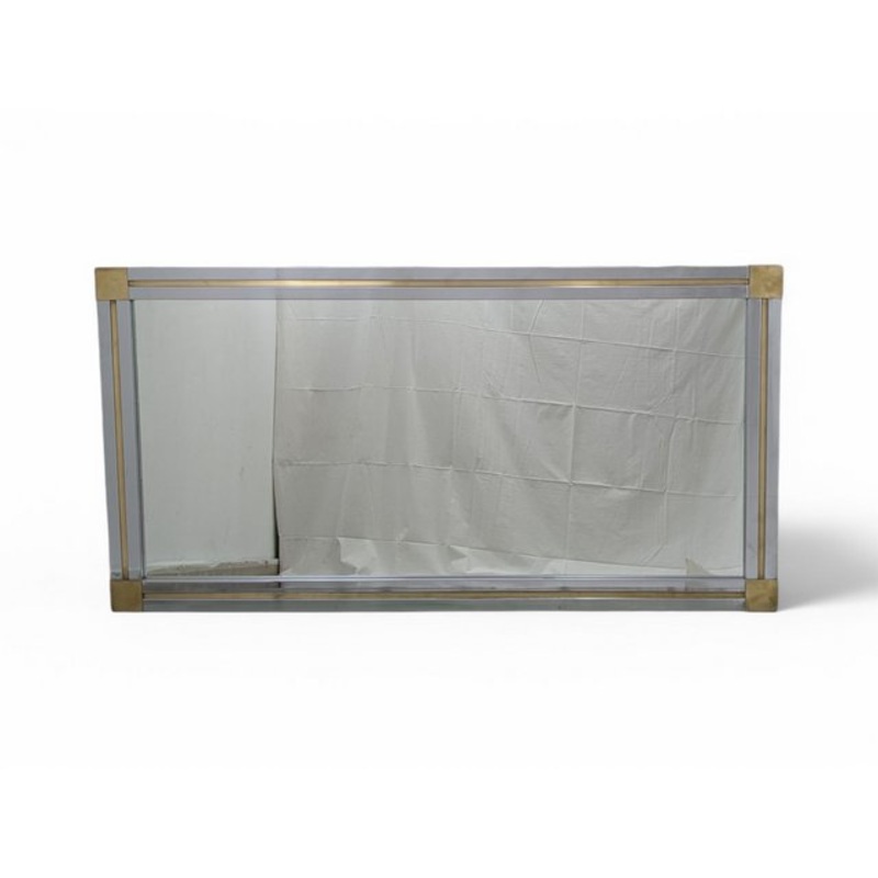 70s mirror, chrome and brass frame, corners with brass squares. Italian production.