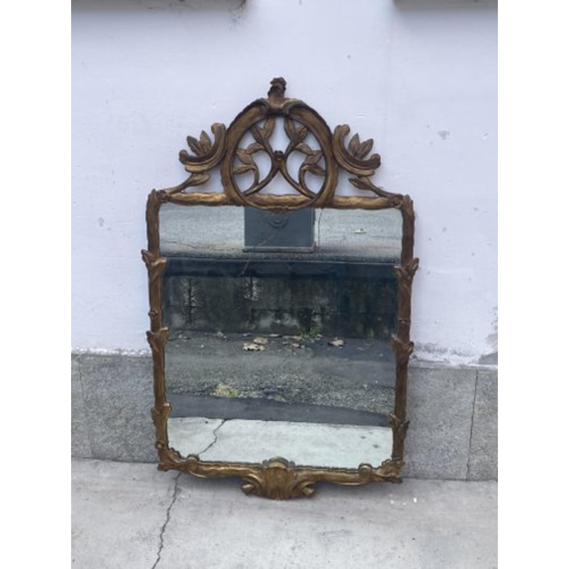Beautiful mirror from the mid-20th century, between 1940 and 1950. Original mirror with some signs of oxidation. Gilt wood decorations in excellent condition, only a small scratch on the flower at the top of the mirror but invisible from the front. Maximum