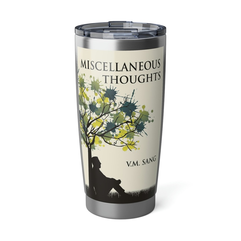 Minimize your plastic footprint with style. This tumbler fits perfectly into car cup holders, and the rubber gasket makes it spill-resistant on bumpier roads. The double-wall insulation makes sure drinks stay at the right temperature until the next pit stop. The cover art in this 20 oz tumbler is from V.M. Sang’s book, Miscellaneous Thoughts.