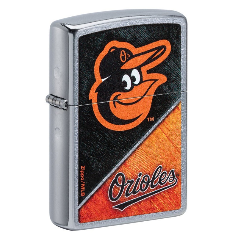 Root for favorite team with this official Baltimore Orioles Zippo lighter! This year's Street Chrome model features the Baltimore Orioles logo over a colorblock background in your favorite team's colors using our Color Image process.Comes packaged in a gif