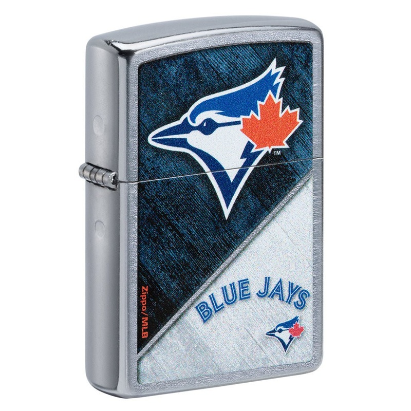 Root for favorite team with this official Toronto Blue Jays Zippo lighter! This year's Street Chrome model features the Toronto Blue Jays logo over a colorblock background in your favorite team's colors using our Color Image process.Comes packaged in a gif