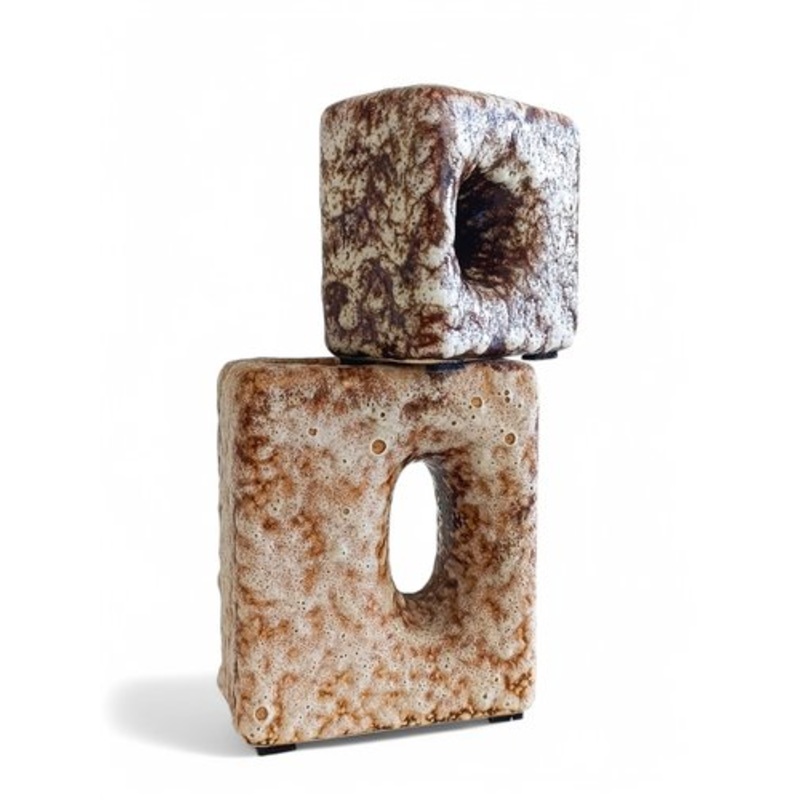 A set of really cute ceramic squared vases featuring a beautiful earthy fat lava glazing. Handmade circa the 1960s. The larger one was made by ceramist Dutch artist Marius Van Woerden. The smaller one with a slightly darker glazing was made by Jopeko Ceram