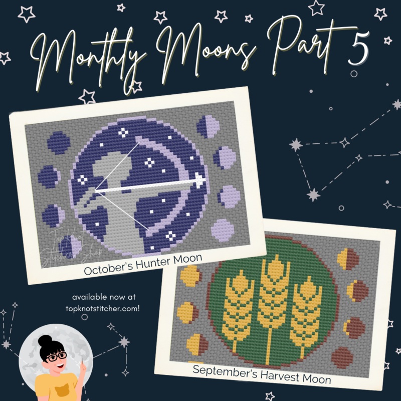 Monthly Moons Part 5: September’s Harvest Moon & Octobers Hunter Moon (PDF) | TopKnot Stitcher Shop – PDF Download