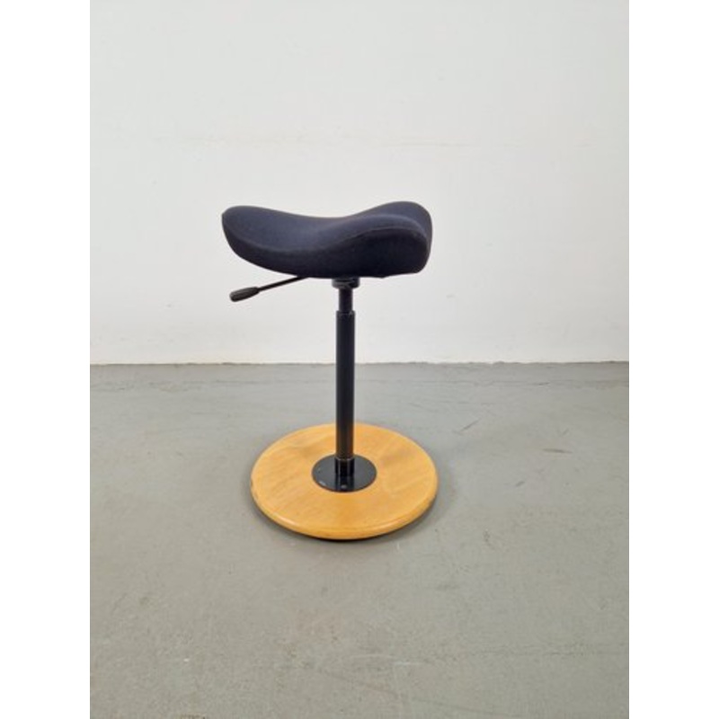 Stokke Varir Move Medium Black wool chair stoolERGONOMIC CHAIR SADDLE STOOLThe Move is equipped with a black wool fabric upholstery.This is in a very nice condition.The base is made of clear varnished beech wood, with normal traces of use.Dimensions: seat
