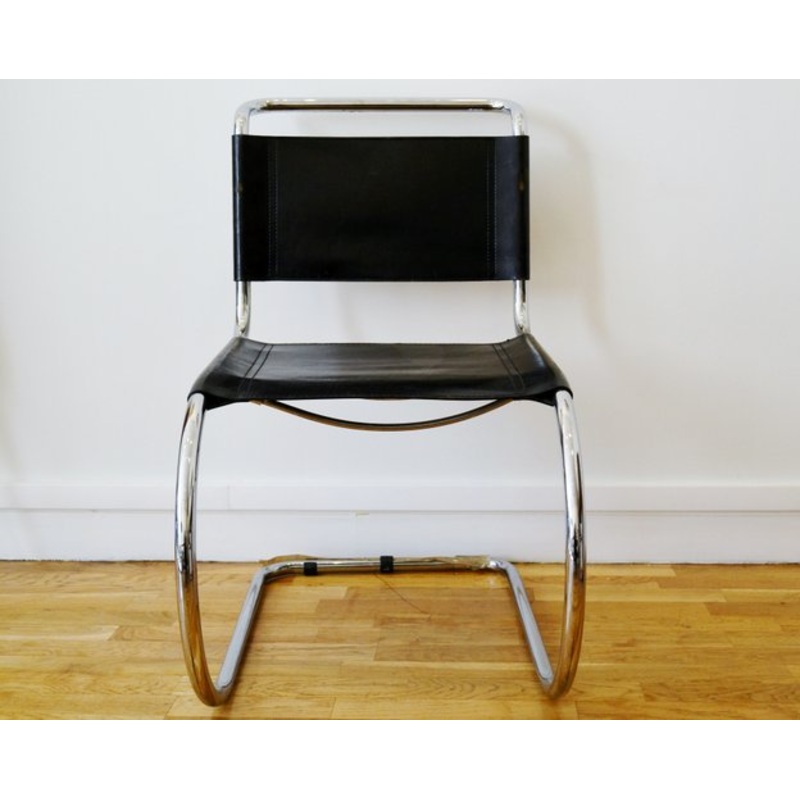 Set of four armchairs, model "MR10"1980s reissue, equipped with leather instead of the textile used in the original 1930s edition. The reissued chairs are functional and can be used, unlike the originals, which are primarily for collectors.Tubular chromed