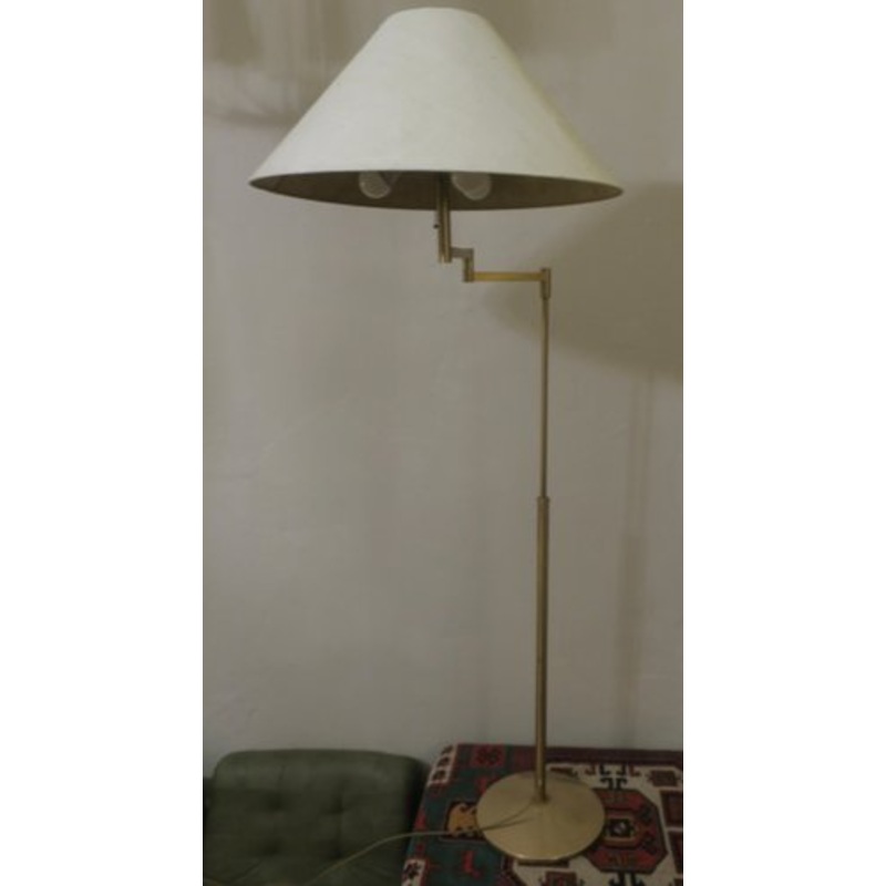 Walter von Nessen multi-adjustable swing-arm floor lamp in brass, USA 1960s. The arm swings through 360 deg. with adjustable length, and the height can be varied from 138 cm to 185 cm. Creator Walter von Nessen Design Period 1960 to 1969 Year Production Pe