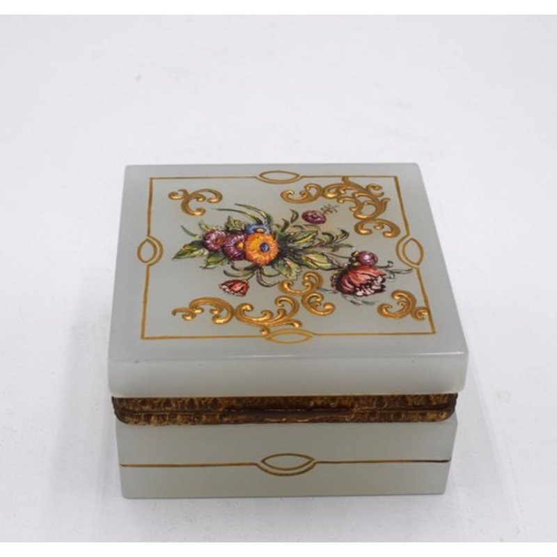 Cenedese Murano box, produced in the 1950s/60s.Murano glass, brass and floral decorations.Excellent condition, no breaks, see photos.Dimensions: H= 6 cm; 11x11 cm. Manufacturer Cenedese Design Period 1960 to 1969 Production Period 1960 to 1969 Country of M