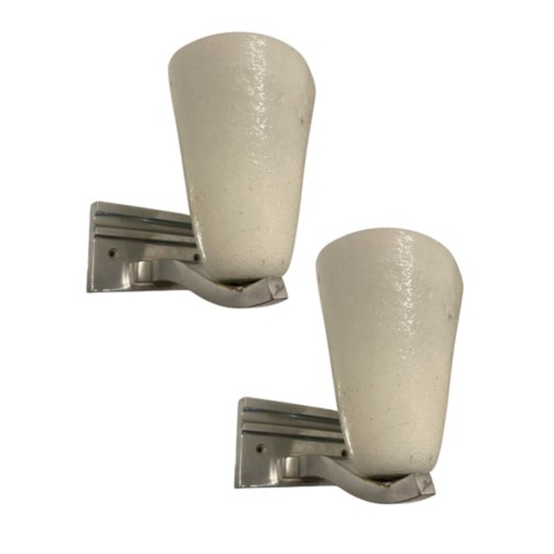 Murano Glass Sconces Set of 2 1940sChrome frame Murano puleguso glass Height 15 cmWidth 13 cmDepth 13 cmNew wiring installed Design Period 1920 to 1949 Production Period 1940 to 1949 Country of Manufacture Italy Style Classical Detailed Condition Good This