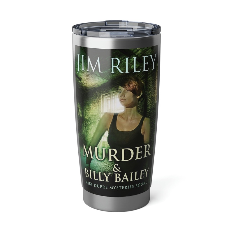 Minimize your plastic footprint with style. This tumbler fits perfectly into car cup holders, and the rubber gasket makes it spill-resistant on bumpier roads. The double-wall insulation makes sure drinks stay at the right temperature until the next pit stop. The cover art in this 20 oz tumbler is from Jim Riley’s book, Murder & Billy Bailey.