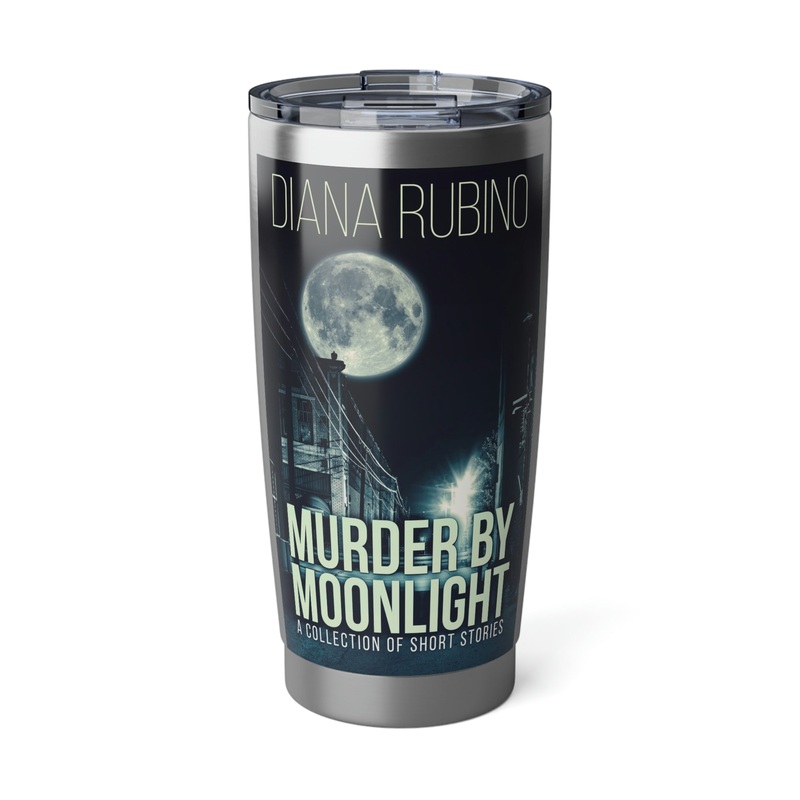Minimize your plastic footprint with style. This tumbler fits perfectly into car cup holders, and the rubber gasket makes it spill-resistant on bumpier roads. The double-wall insulation makes sure drinks stay at the right temperature until the next pit stop. The cover art in this 20 oz tumbler is from Diana Rubino’s book, Murder By Moonlight.