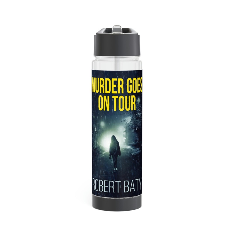 Add flavor and personality to your water with this infuser bottle. Twist the base off to access the infuser and add fruits, tea leaves, or anything you desire to enhance the flavor of your water. On the top, you’ll find a twist-on lid with a flip-top drinking sprout for a seamless drinking experience. This infuser is excellent for using at home, during outdoor excursions, or at the gym as a sports bottle. The cover art in this infuser water bottle is from Robert Baty’s book, Murder Goes On Tour.