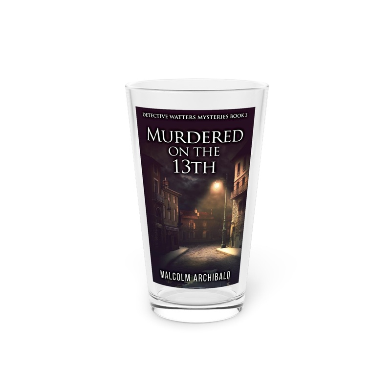 Nothing can replace a pint glass except for another pint glass. These long and transparent glasses are highly versatile, can make for a great housewarming gift, and are bound to be used in any household. The cover art on this pint glass is from Malcolm Archibald’s book, Murdered On The 13th.