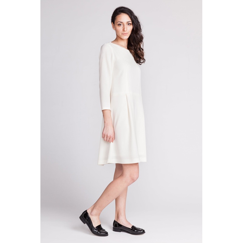 Lexi has the right balance of relaxed and fitted elements. This lined dress has a sleek A-line fit, set-in sleeves and a boat neck. The waistline is dropped, and the skirt of the dress has small, subtle pleats at the front. The dress has a concealed zip fastening at the back.