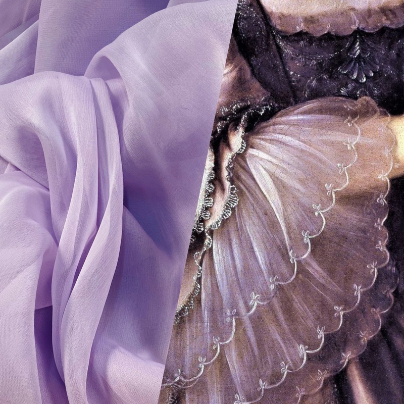 A gorgeous Silk and Poly blend Chiffon Fabric in Lavender. Sheer. 55 Wide.