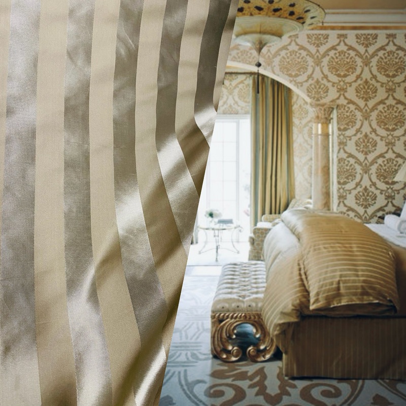 A beautiful Designer 100% Silk in the most gorgeous shade of tone on tone Gold Stripes. Can be used for interior decorating, costume dress and skirts garments. Sold by the yard.Will combine shipping.Photo on the right is for inspirational purposes only, it