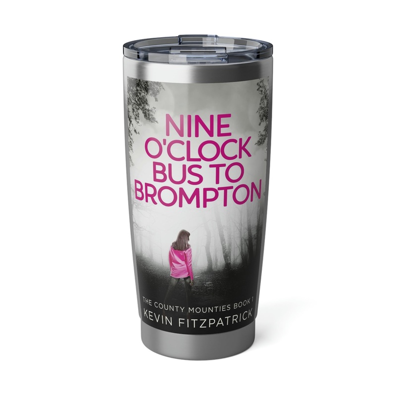 Minimize your plastic footprint with style. This tumbler fits perfectly into car cup holders, and the rubber gasket makes it spill-resistant on bumpier roads. The double-wall insulation makes sure drinks stay at the right temperature until the next pit stop. The cover art in this 20 oz tumbler is from Kevin Fitzpatrick’s book, Nine O’Clock Bus To Brompton.