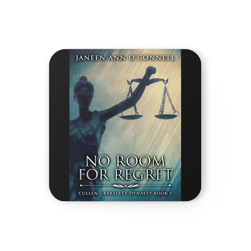 These coasters are made with a high-gloss top and feature a cork back to prevent sliding, and each order comes with a set of four coasters. The cover art in these coasters is from Janeen Ann O’Connell’s book, No Room For Regret.