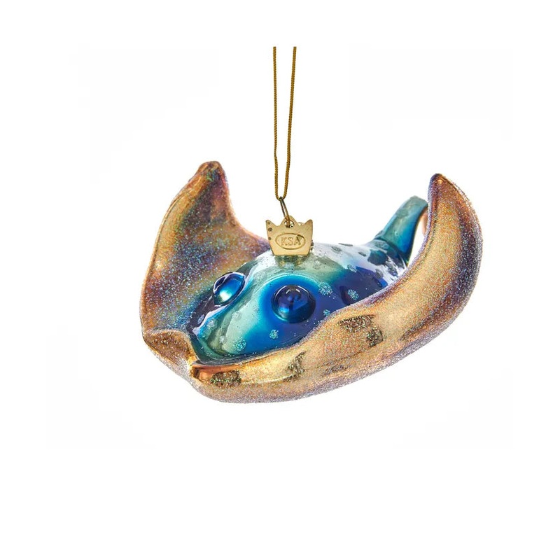 Kurt Adler's Noble Gems glass stingray ornament is a unique addition to your holiday dcor or Christmas tree. This glittered stingray ornament is expertly crafted.