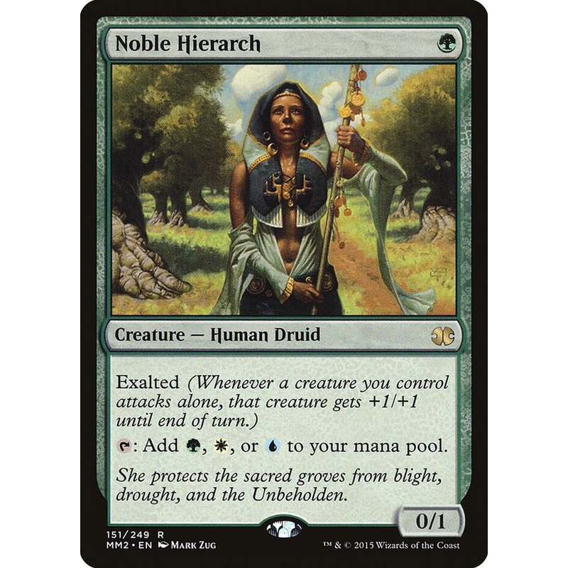 Exalted(Whenever a creature you control attacks alone, that creature gets +1/+1 until end of turn.)T: Add G, W, or U to your mana pool.Rarity:R#:151Card Type:Creature Human DruidP / T:0 / 1Flavor:She protects the sacred groves from blight, drought, and the