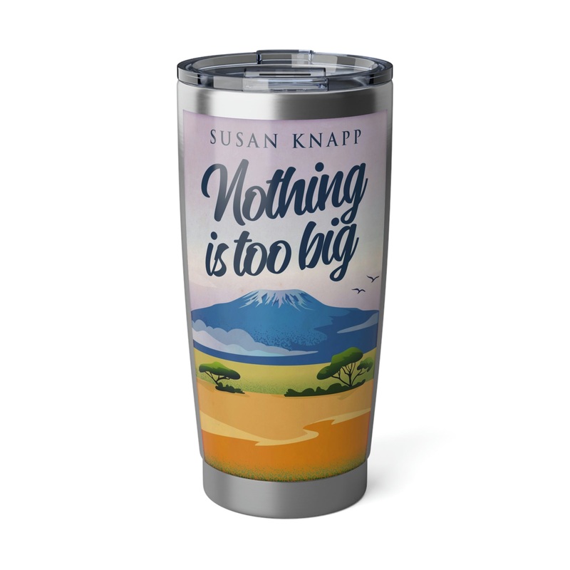 Minimize your plastic footprint with style. This tumbler fits perfectly into car cup holders, and the rubber gasket makes it spill-resistant on bumpier roads. The double-wall insulation makes sure drinks stay at the right temperature until the next pit stop. The cover art in this 20 oz tumbler is from Susan Knapp’s book, Nothing Is Too Big.