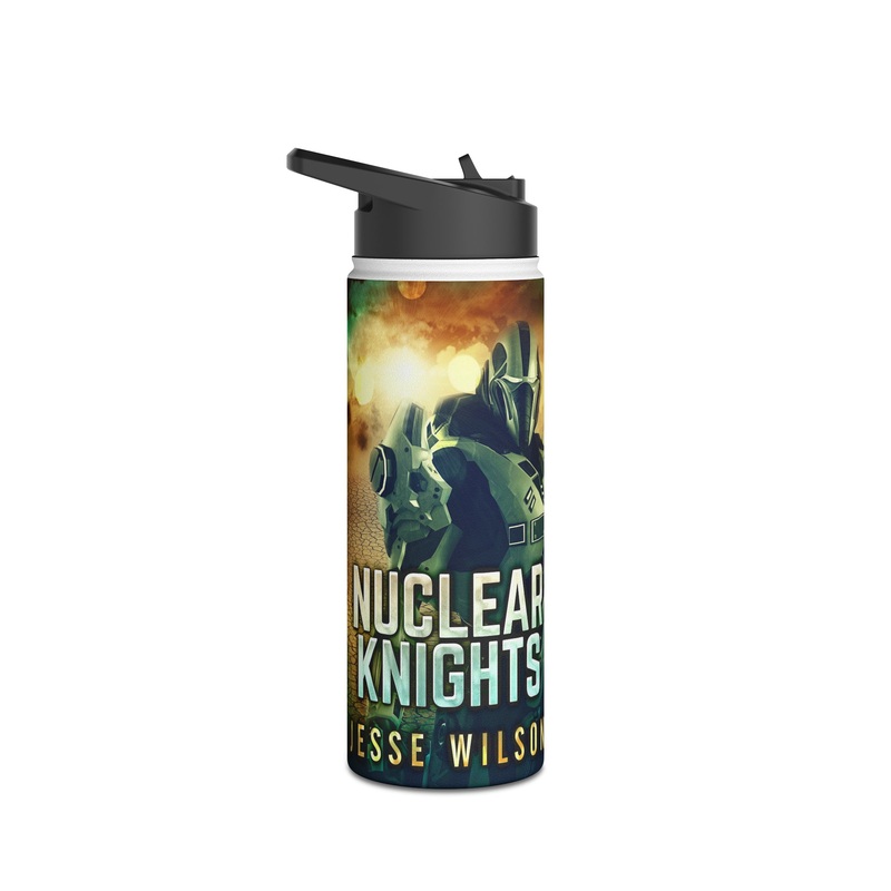 Quench your thirst in style with this 18oz stainless steel water bottle featuring a double-wall stainless steel build that keeps your drinks frosty for 24h and soothingly hot for 12h. This BPA-free, steel water bottle comes with a twist-on lid for easy sipping, making it excellent for daily use at work, at college, in the car, and beyond. The cover art in this water bottle is from Jesse Wilson’s book, Nuclear Knights.