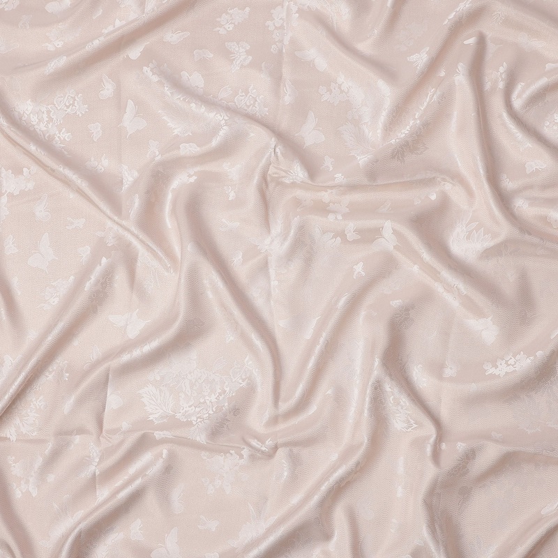 Nude Butterfly Floral Jacquard Pure Silk Satin Fabric 140 Cms Width Made in China-D24911