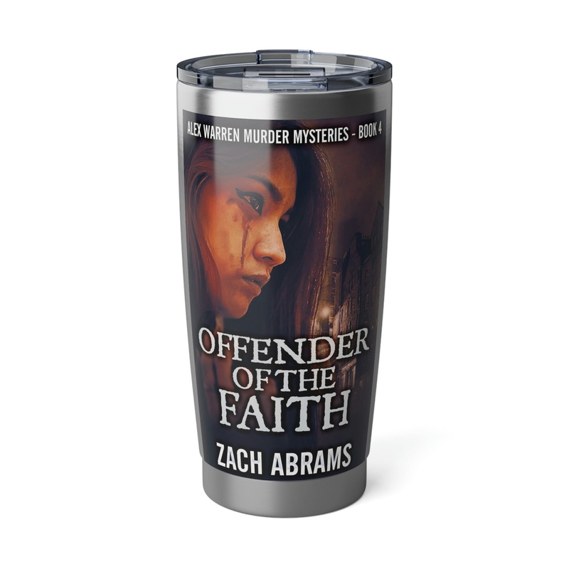 Minimize your plastic footprint with style. This tumbler fits perfectly into car cup holders, and the rubber gasket makes it spill-resistant on bumpier roads. The double-wall insulation makes sure drinks stay at the right temperature until the next pit stop. The cover art in this 20 oz tumbler is from Zach Abrams’s book, Offender Of The Faith.