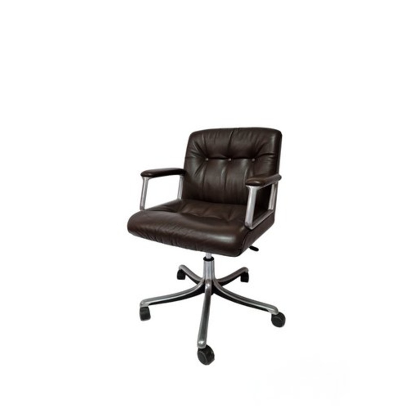90s leather office armchair by Osvaldo Borsani for Tecno. The Tecno brand is shown on the inside of the base of the chairs as can be seen from the photos. Healthy structure and skin in excellent conditionThe piston seat for height adjustment must be accomp