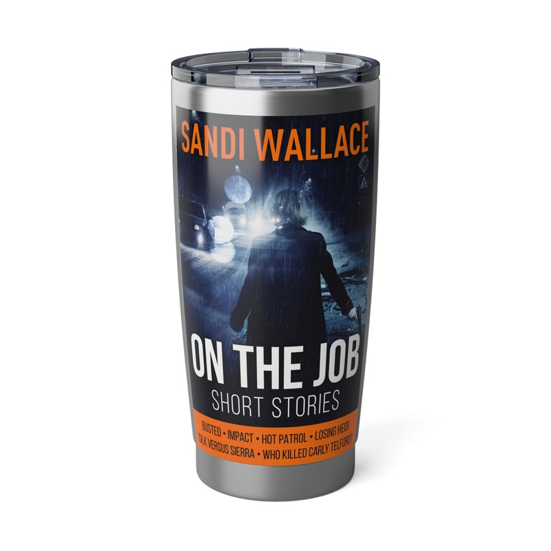 Minimize your plastic footprint with style. This tumbler fits perfectly into car cup holders, and the rubber gasket makes it spill-resistant on bumpier roads. The double-wall insulation makes sure drinks stay at the right temperature until the next pit stop. The cover art in this 20 oz tumbler is from Sandi Wallace’s book, On The Job.