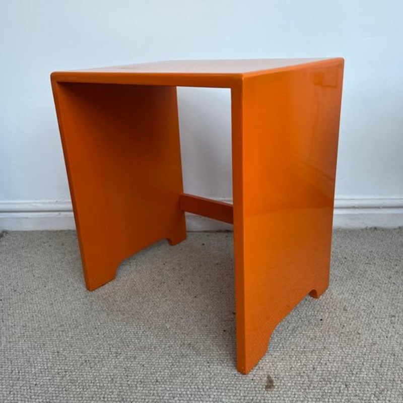 Orange lacquered hi gloss Side Table/ Stool dimensions 51.5 cm height 35cm depth 47cm width Production Period Before 2010 Style Vintage Detailed Condition Good This vintage/antique item may have some wear such as scratches and other signs of ageing. Produc