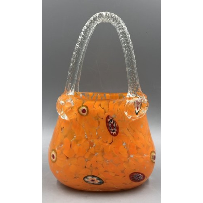 Whether as a gift for art lovers or as a special piece for your own collection – this Murano glass vase in the shape of a handbag with a millefiori pattern in orange is a real eye-catcher and a symbol of the highest glassblowing art. Bring a piece of Murano into your home and enjoy the beauty and quality of this unique work of art.