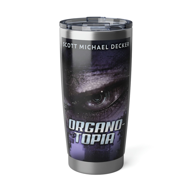 Minimize your plastic footprint with style. This tumbler fits perfectly into car cup holders, and the rubber gasket makes it spill-resistant on bumpier roads. The double-wall insulation makes sure drinks stay at the right temperature until the next pit stop. The cover art in this 20 oz tumbler is from Scott Michael Decker’s book, Organo-Topia.