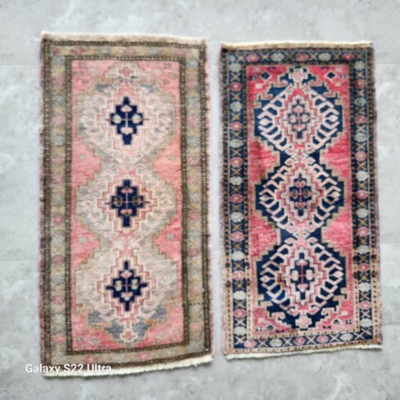 1960s Oushak Wool Yastik Bath Mats – a Pair 1’9” X 3’3”