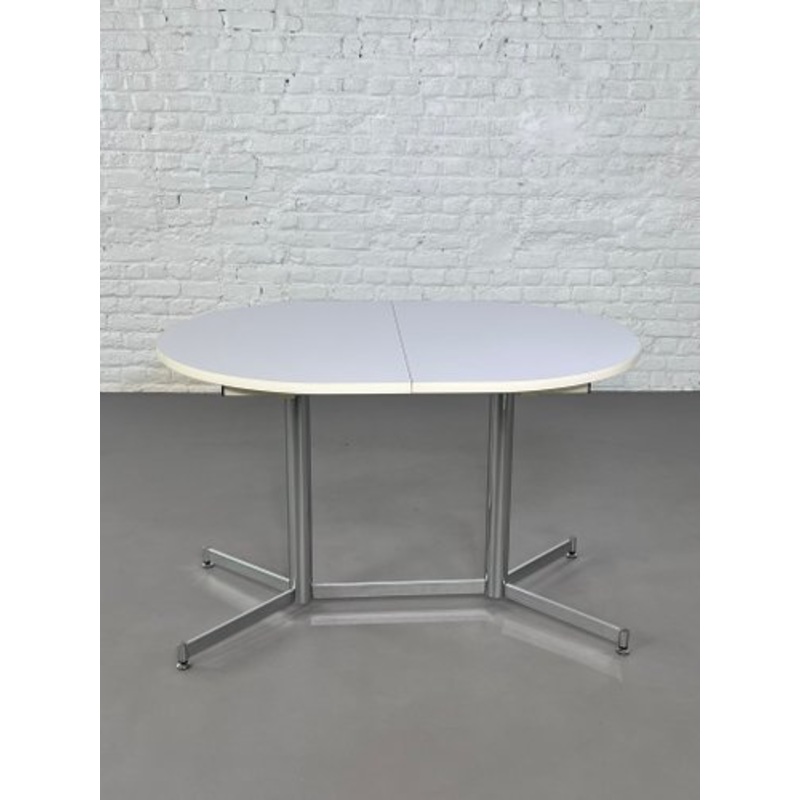 50s oval and extendable dining table in chrome metal and white formica top
