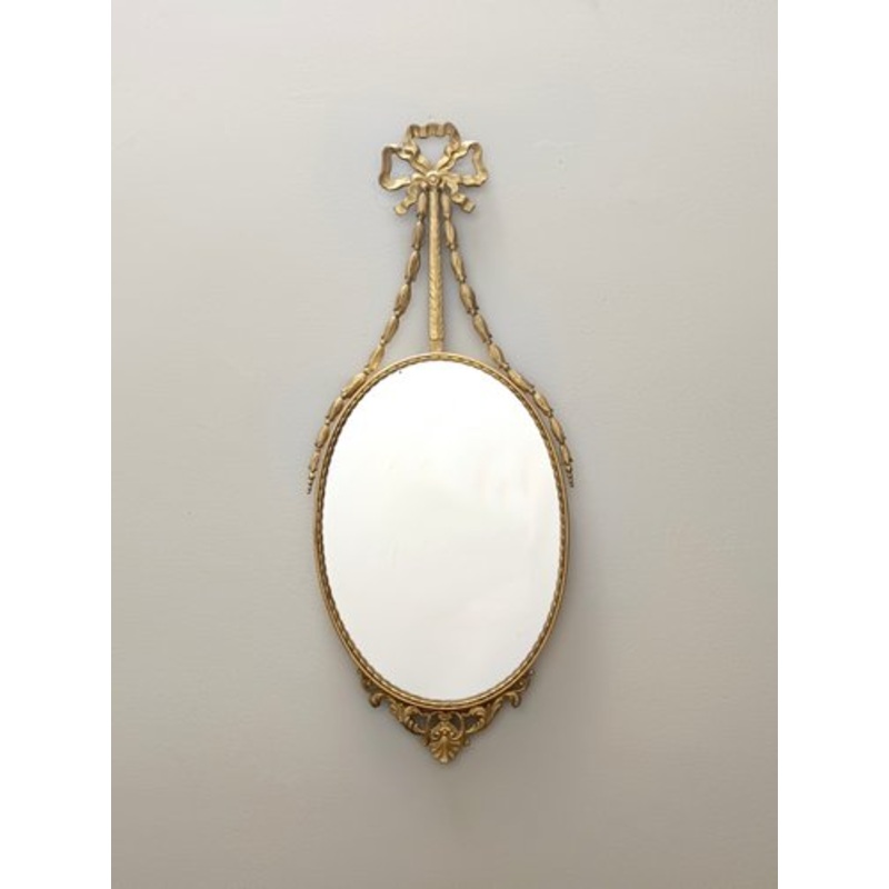 It features a brass frame and a wooden back.